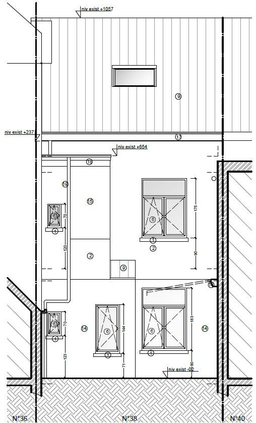 – la fermeture d’un ancien balcon en façade arrière à l’étage,