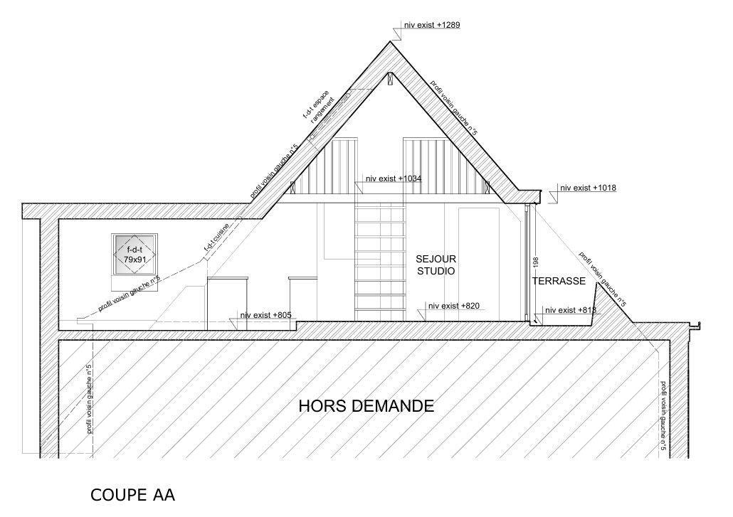 Sur le plan fonctionnel, même s’il est compacte, le logement présente une belle habitabilité — un espace de vie principal bénéficiant d’une grande hauteur sous toiture, un éclairement naturel généreux assuré par des baies et des fenêtres de toit, une salle de bain indépendante, ainsi qu’une terrasse en façade arrière également visible sur les orthophotoplans de 1996. L’ensemble de ces éléments confirme que ce niveau n’a jamais été exploité comme simple grenier, mais bien comme logement à part entière depuis l’origine.