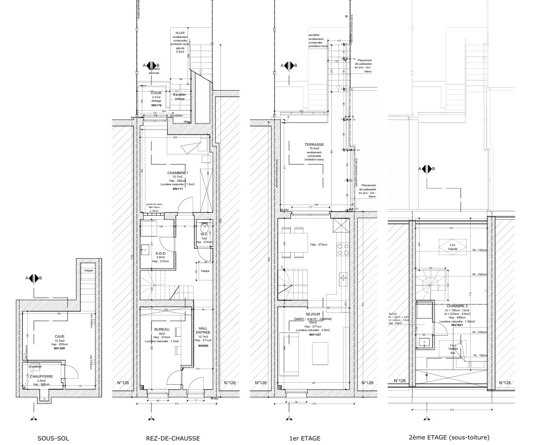 - des modifications en façade avant (menuiseries, mise en peinture et conduit de chaudière en dérogation au RCU),